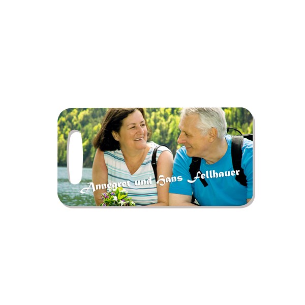 Pendentif pour bagage en matière plastique blanche avec trou allongé. Epaisseur 2 mm.